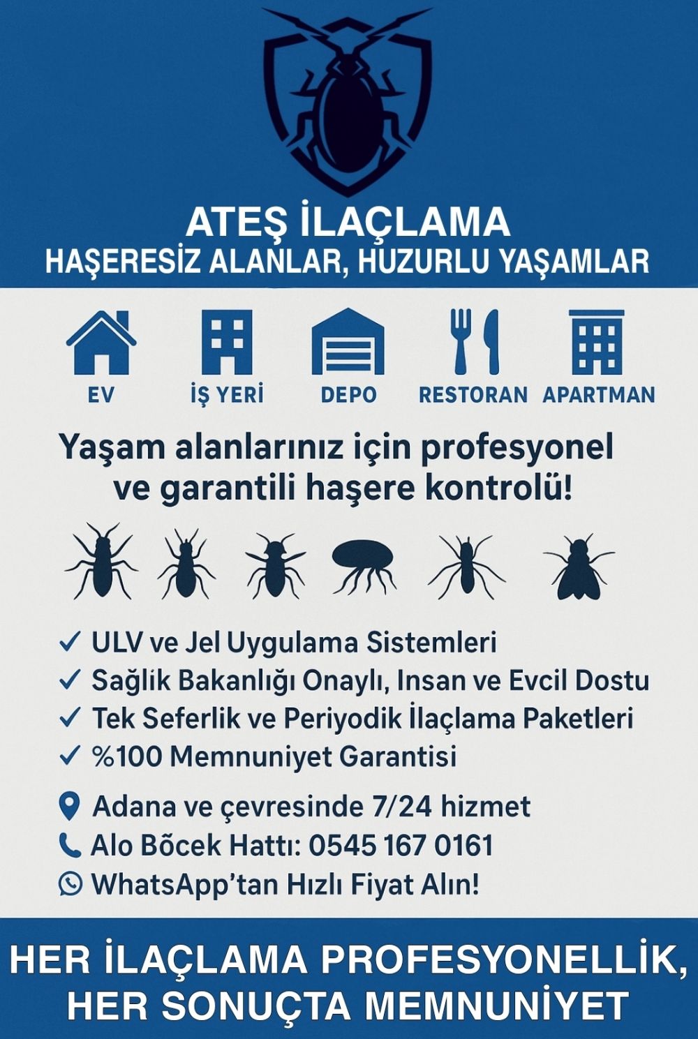➡ Uygun fiyat, kaliteli ilaç, müşteri memnuniyeti garantisi."Yanlış ilaçlama ile paranızı çöpe atmayın" Siz de güvenilir ve kalıcı çözüm istiyorsanız hemen iletişime geçin.”
