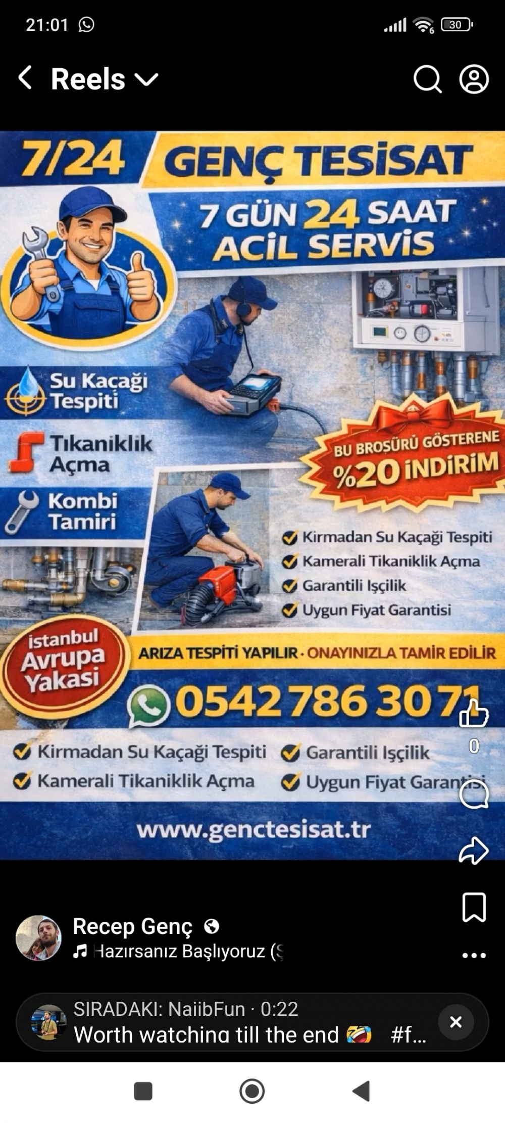 İstanbul Avrupa Yakası’nda uzun yıllardır kombi servisi ve su tesisatı alanında profesyonel hizmet vermekteyiz. 9 yaşından beri tesisat sektörünün içinde olup yılların verdiği tecrübe ile müşterilerimize hızlı ve güvenilir çözümler sunuyoruz.Başlıca hizmetlerimiz:• Kombi tamiri ve bakımı• Petek temizliği• Su kaçağı tespiti (cihazlı)• Tıkanıklık açma• Musluk, batarya ve sifon tamiri• Banyo ve mutfak tesisatı• Laminat parke işleriArızayı yerinde tespit edip müşterimize net fiyat bilgisi veriyoruz. İş onaylandığında aynı fiyat üzerinden tamiri gerçekleştiriyoruz. Yapılmayan işlemler için sadece servis ücreti alınır.✔ Hızlı servis✔ Uygun fiyat✔ Temiz işçilik✔ Garantili hizmet