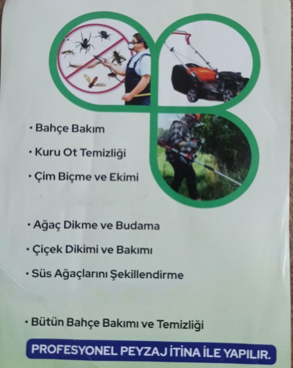 Bahçe peyzaj işleri yapılır Çim ekme veya biçme Budama Toprak belleme Aylık haftalık bahçe bakım Her türlü işler itina ile yapılır